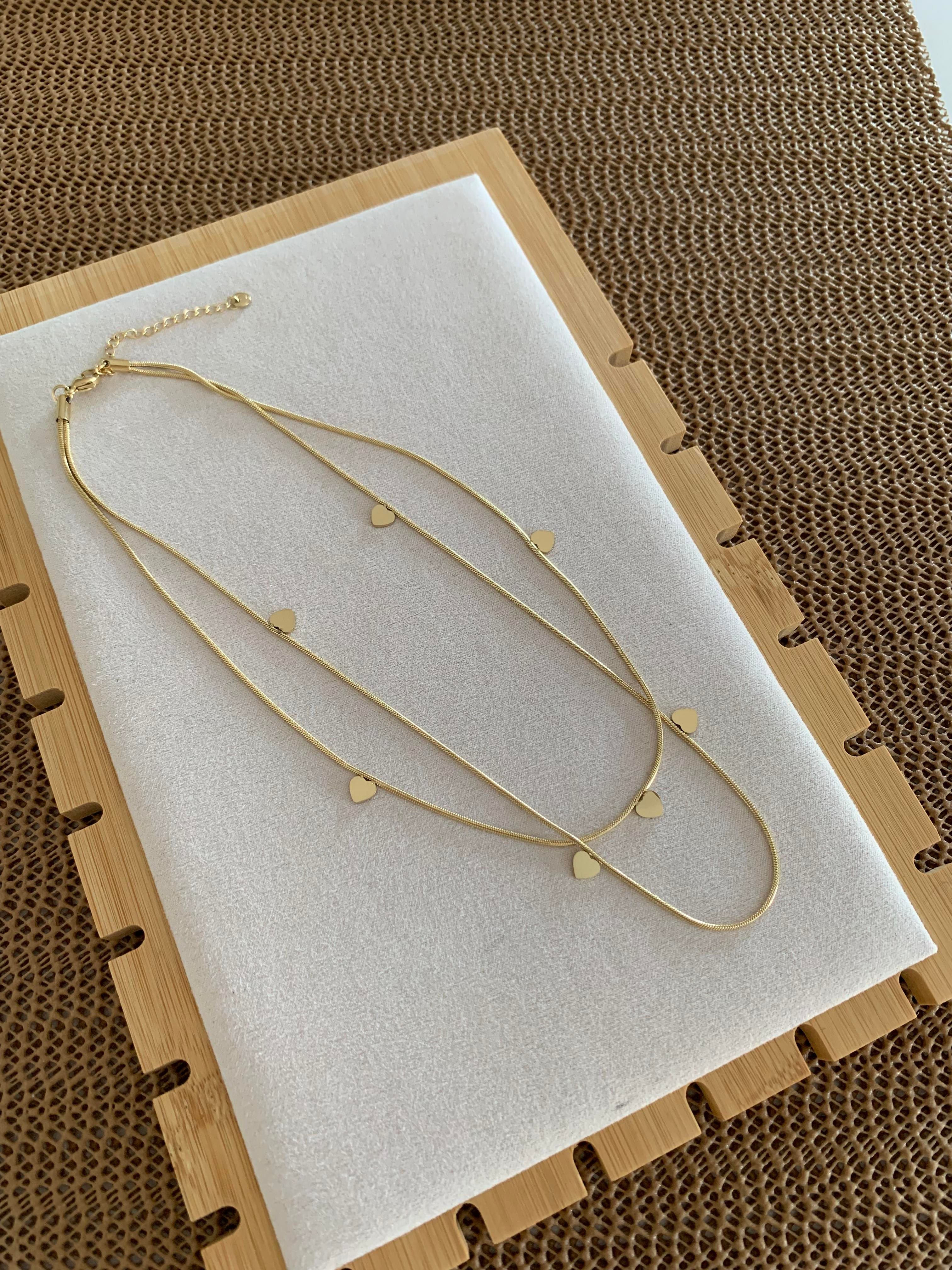 Çelik Gold İkili Küp İtalyan Zincir Kalp Sıralı Kolye (1340)