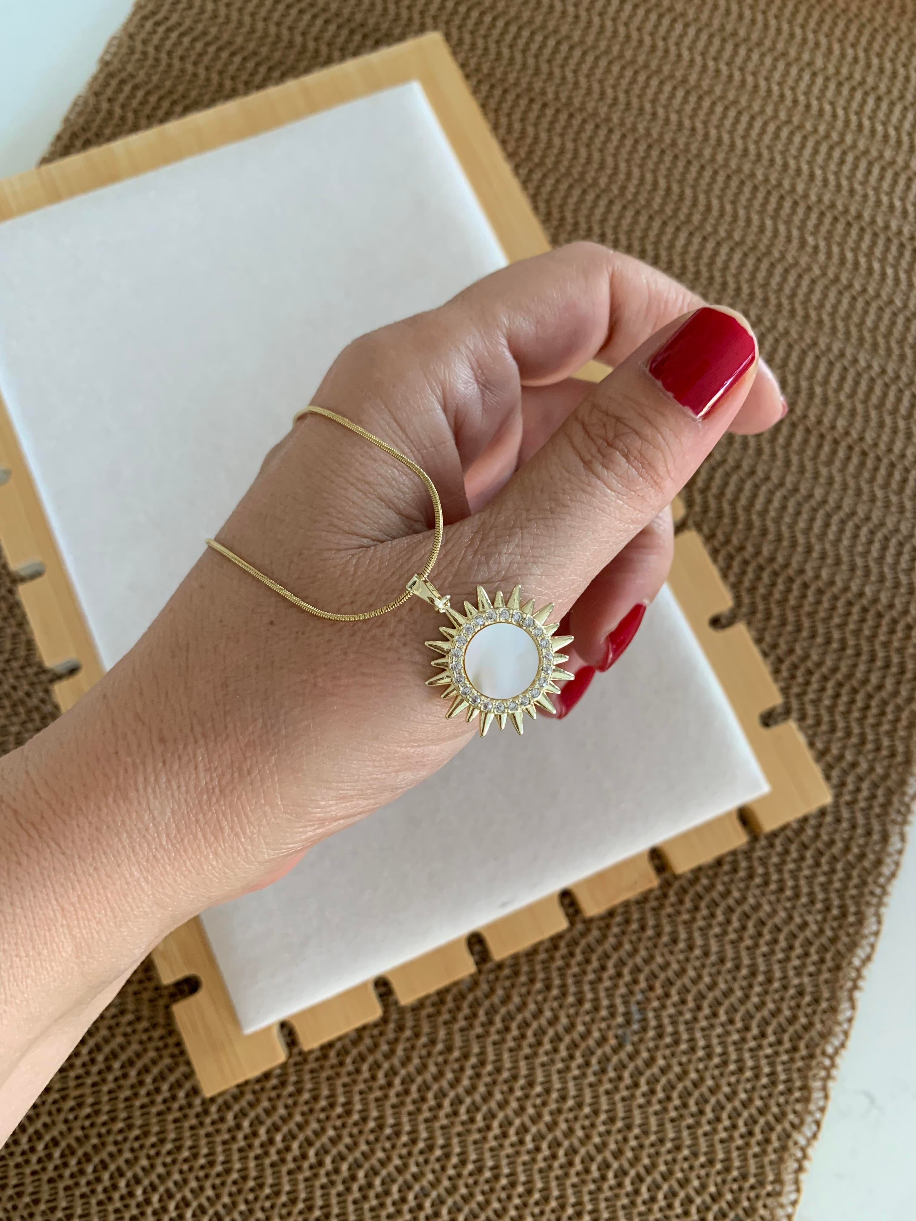 Çelik Gold Küp İtalyan Zincir Zirkon Taşlı Sdf Güneş Kolye (1349)