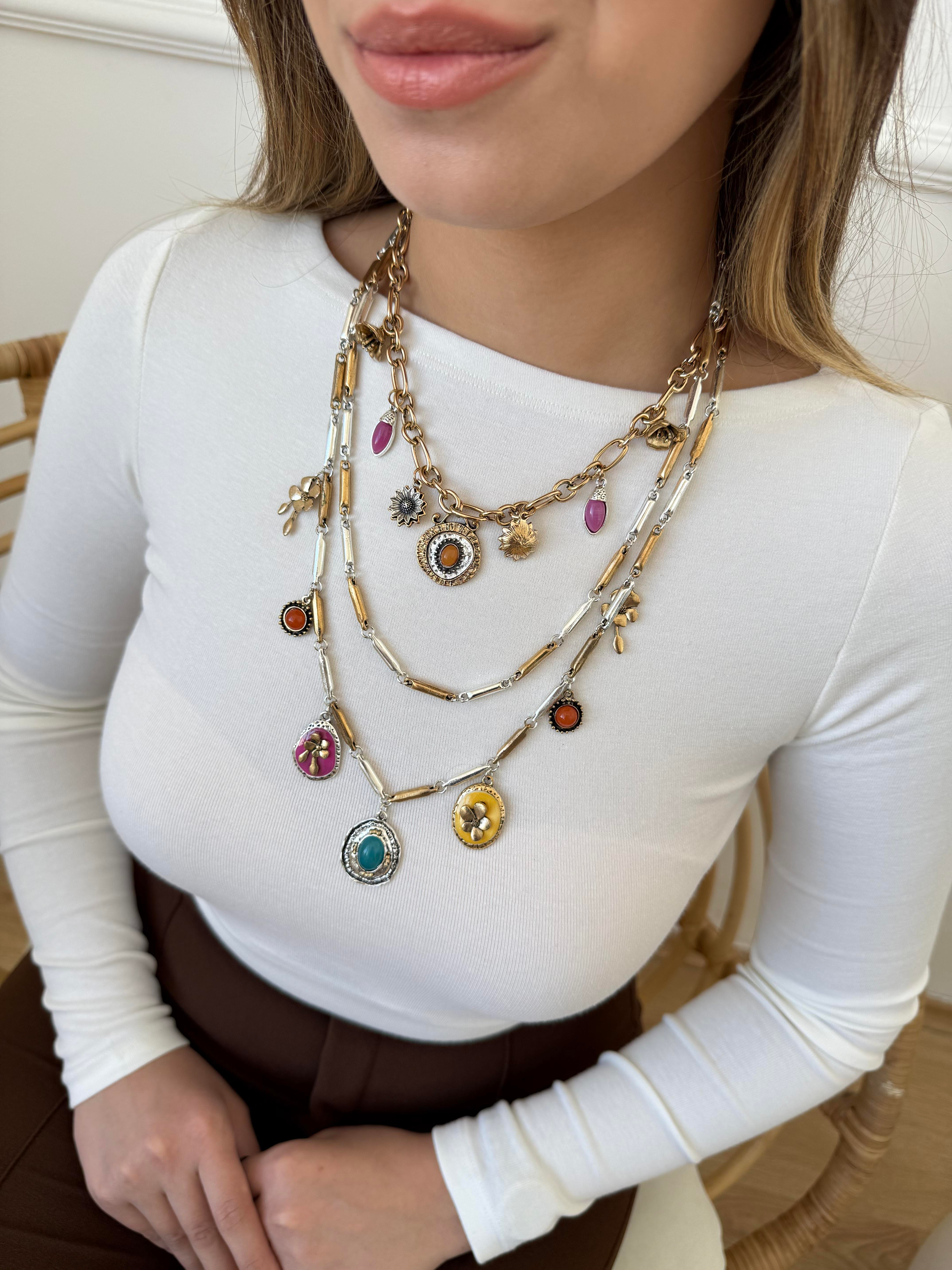 Orjinal Marka Mix Renkli Fruze Çiçek Charm Kolye : 56 cm + 5 cm Uzatma Zinciri