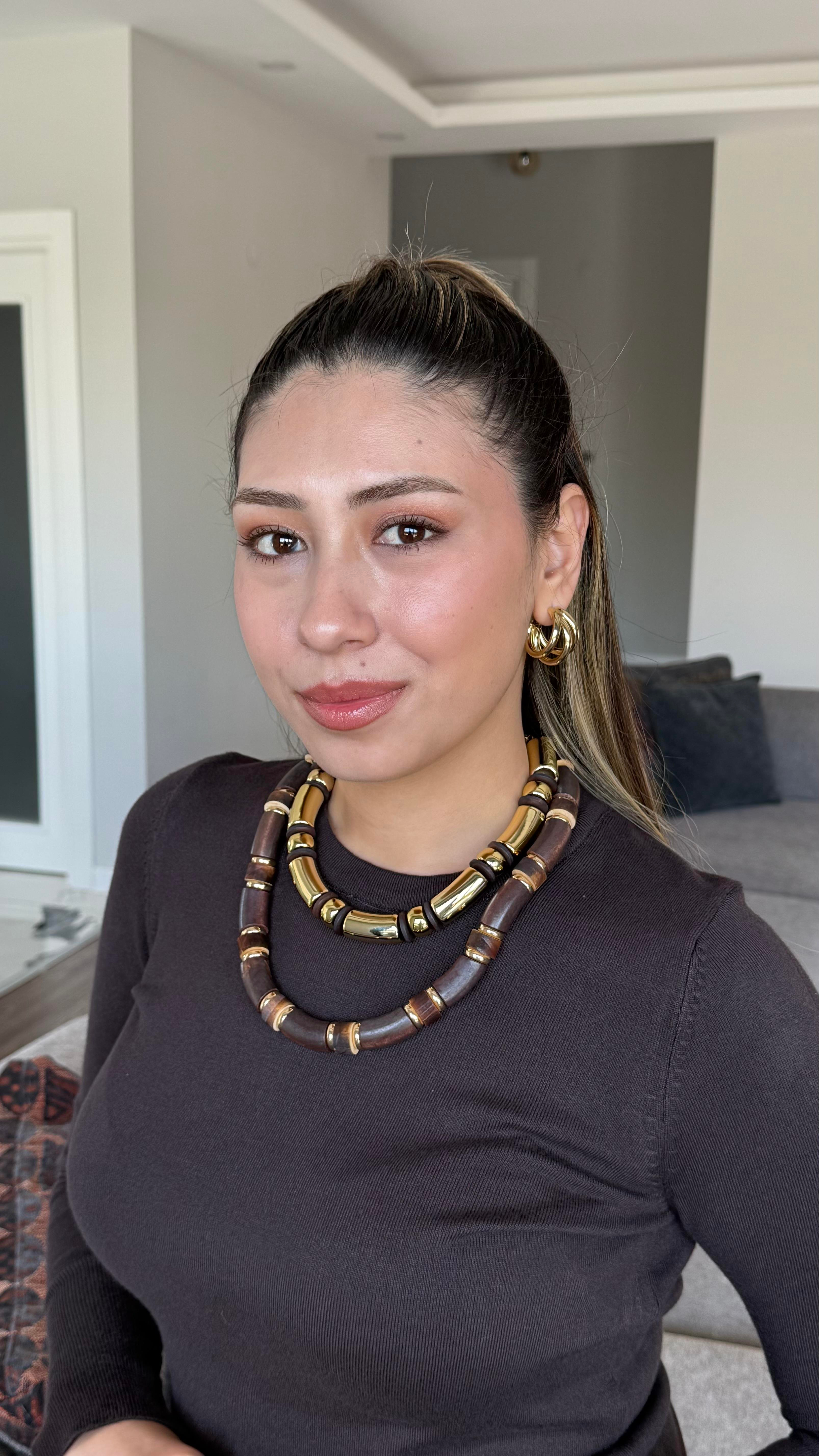 Plaka Boru Tahta Detaylı Tasarım Kolye : 40 cm + 5 cm Uzatma Zinciri