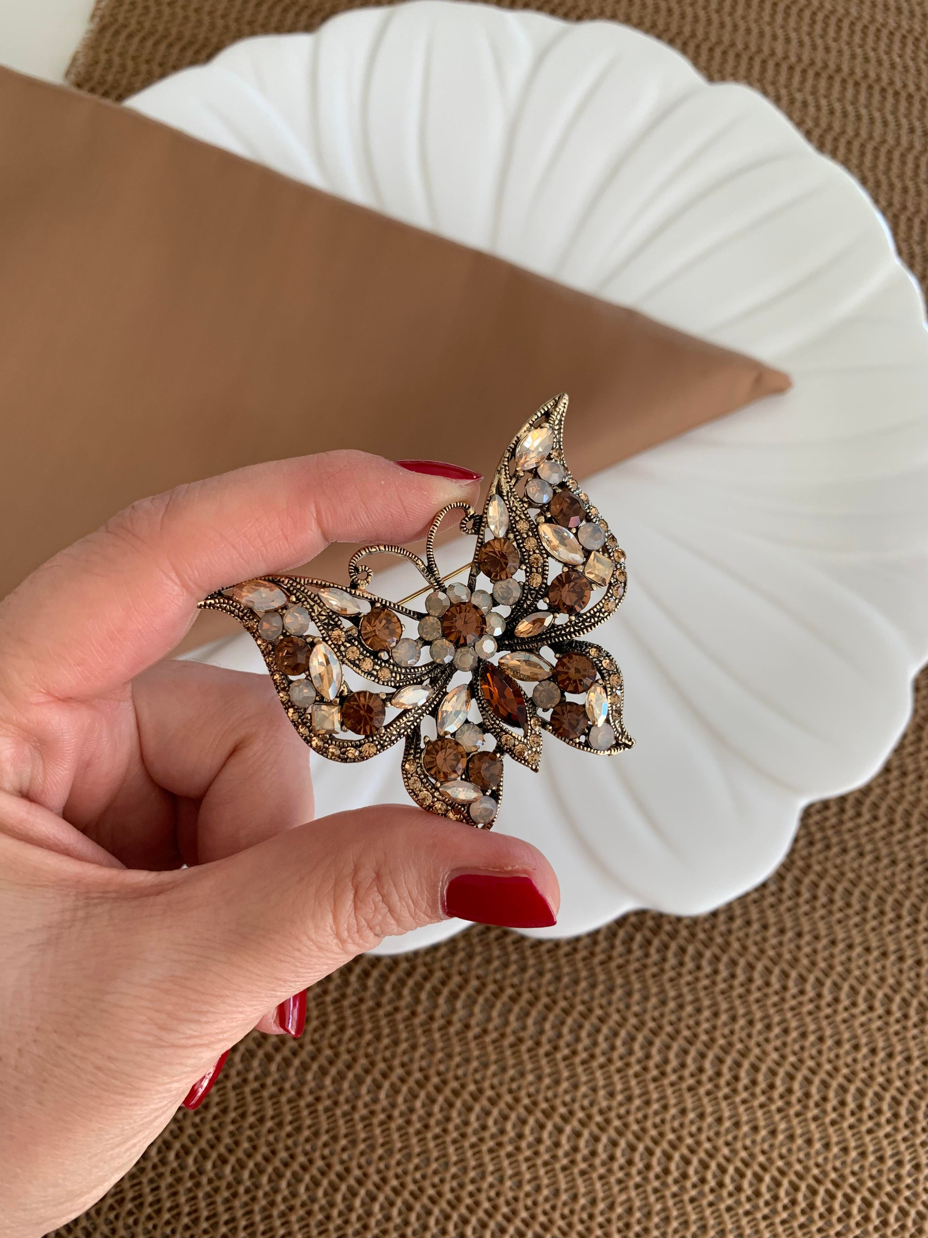 Özel Seri Renkli Baget Taşlı Kelebek Figürlü Broş (1466)