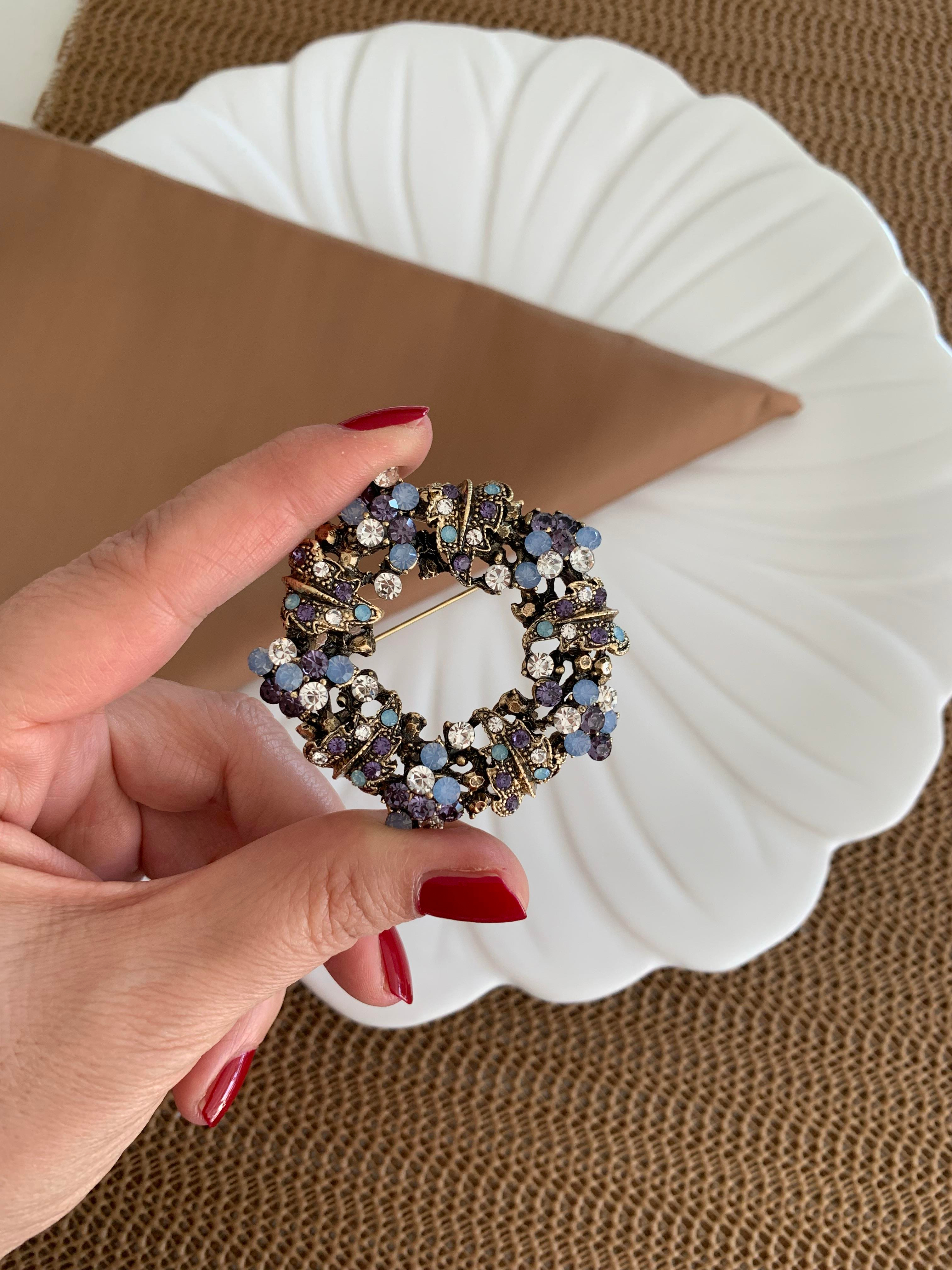 Özel Seri  Renkli Gömme Taşlı Çiçek Motifli Broş