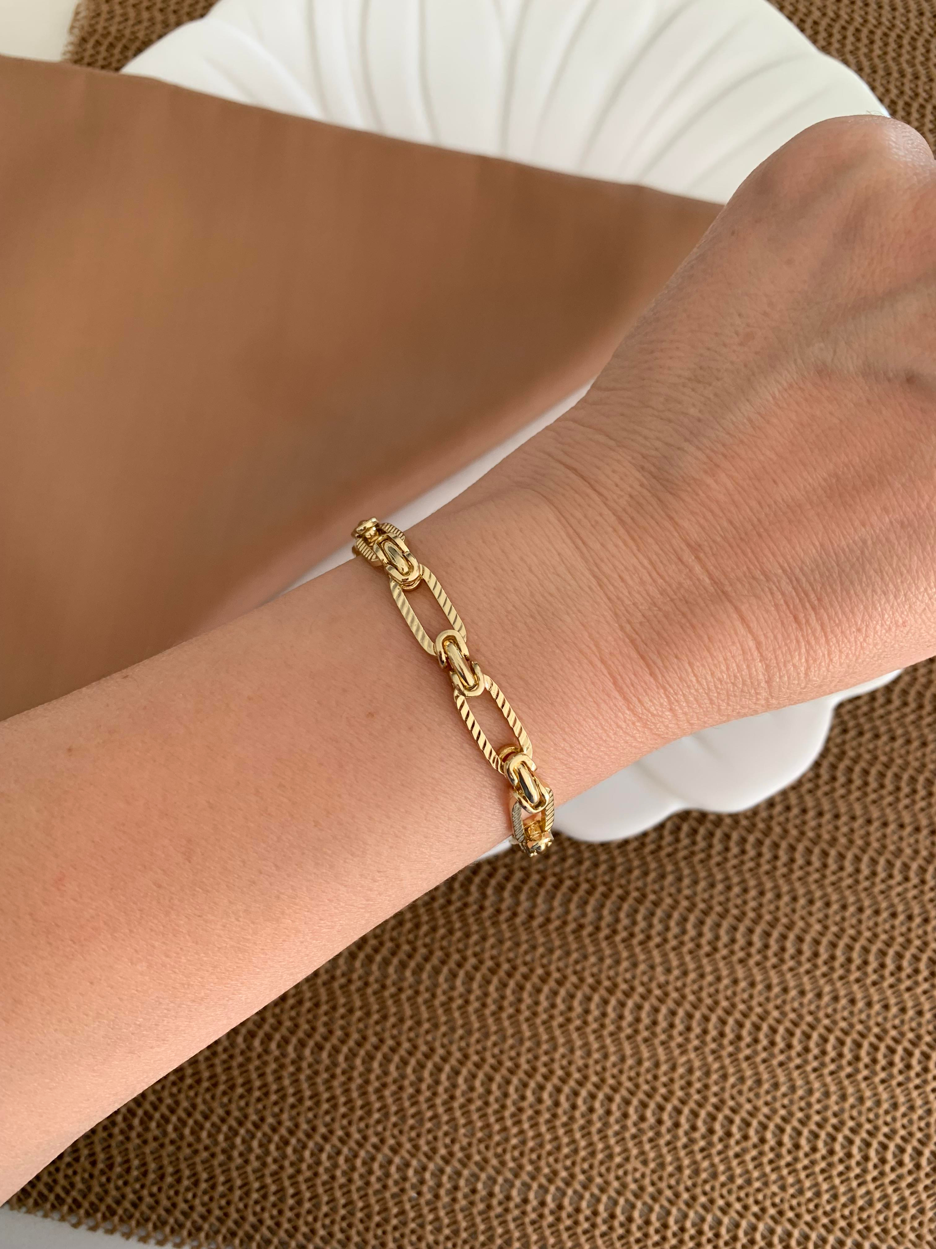 Vip Gold İç İçe Geçme Çizgili Ataç Zincir Bileklik