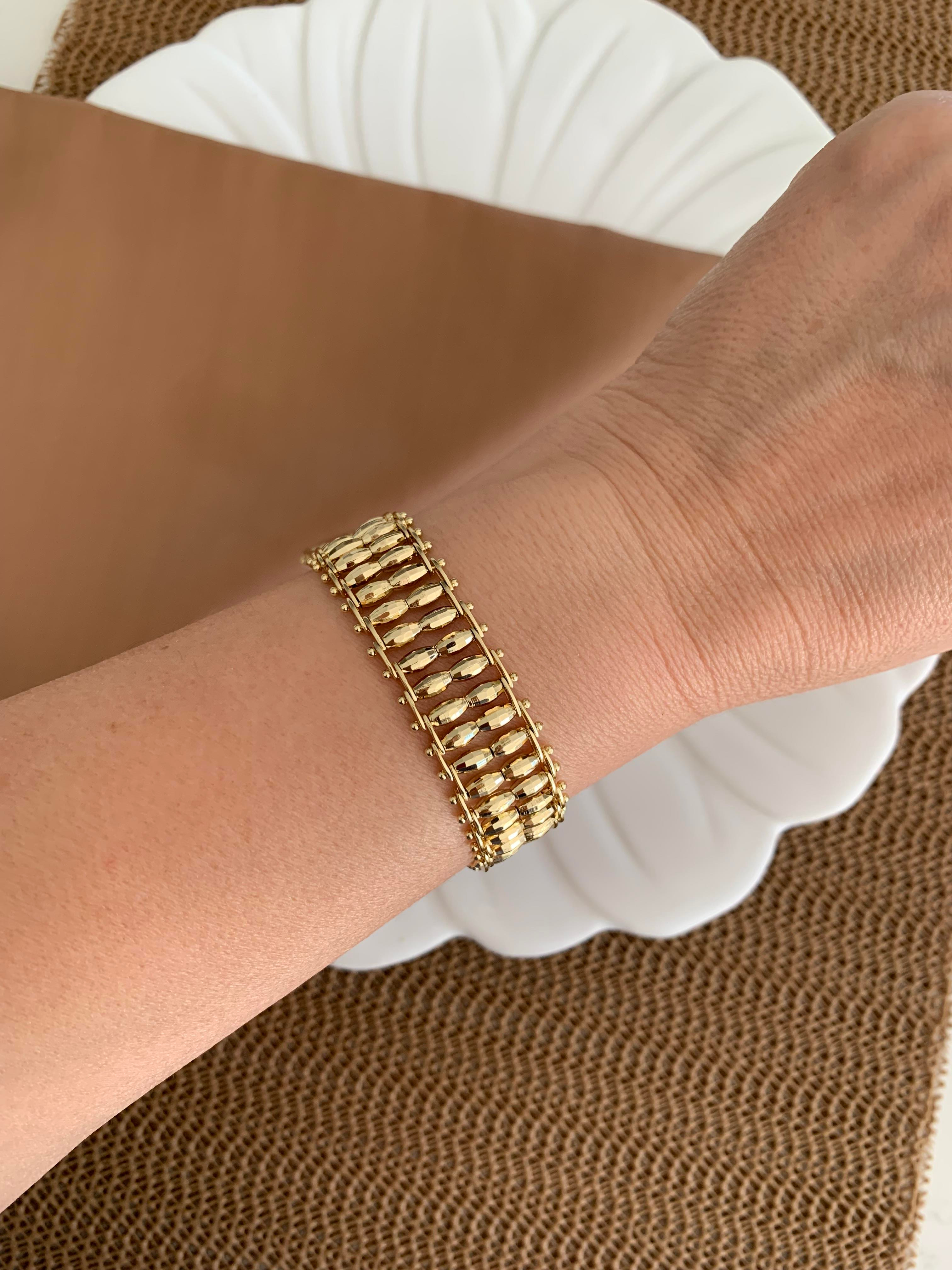 Vip Gold Kenarı Topçuk Detay V Sıralı Tasarım Bileklik