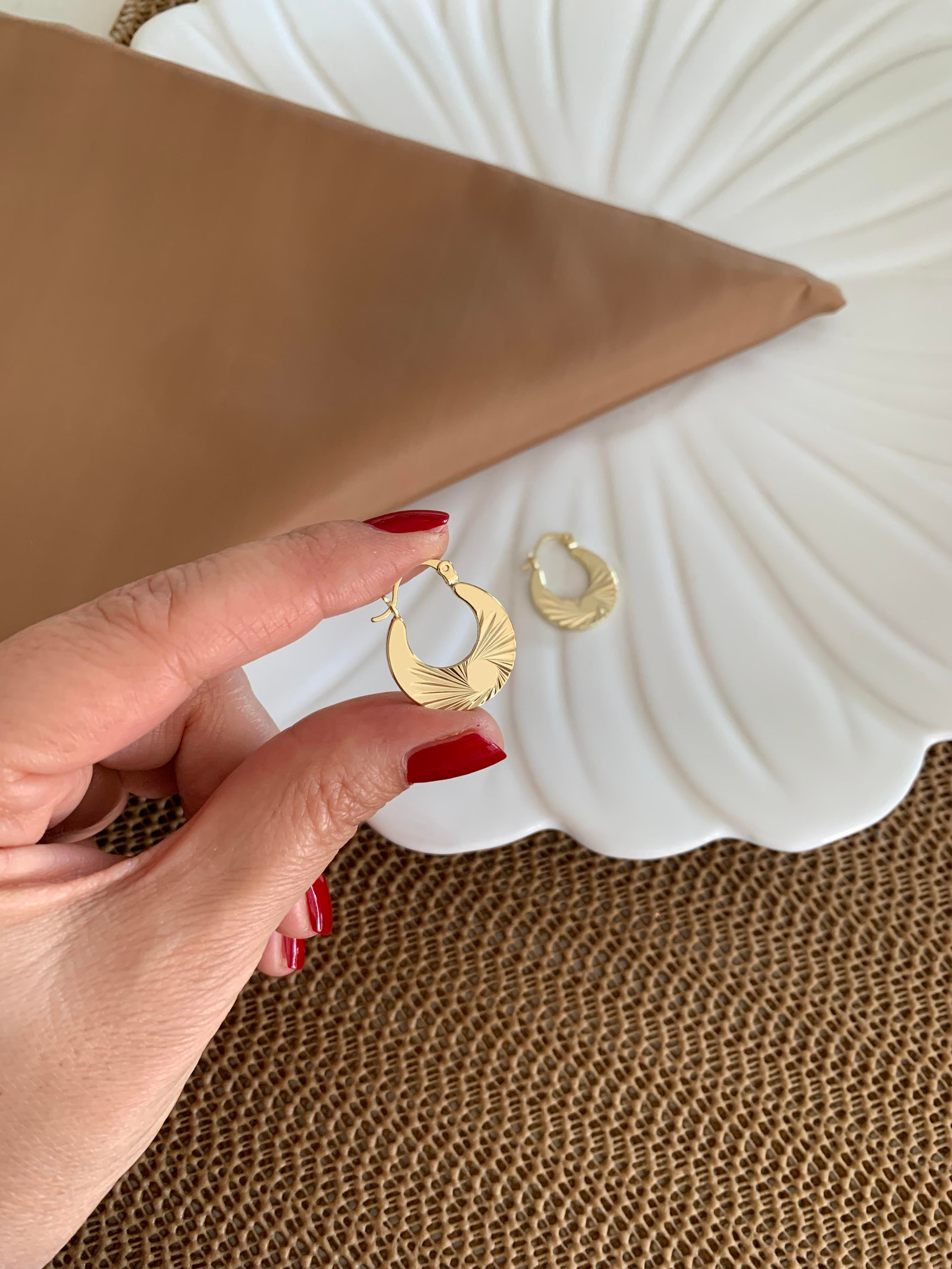 Vip Gold Plaka Çizgili Sepet Halka Küpe (1403)