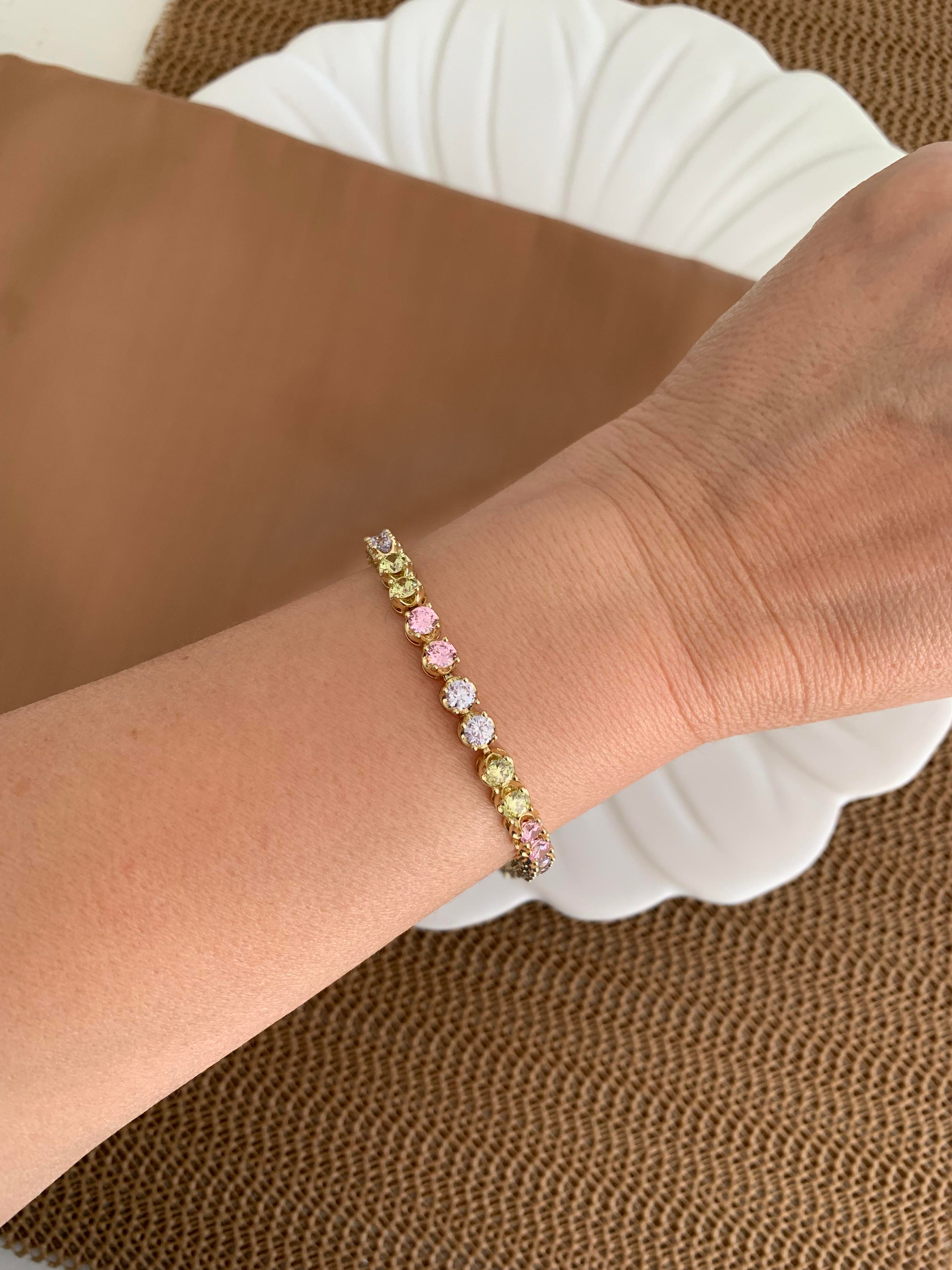 Vip Gold Renkli Tek Taş Sıralı Su Yolu Bileklik