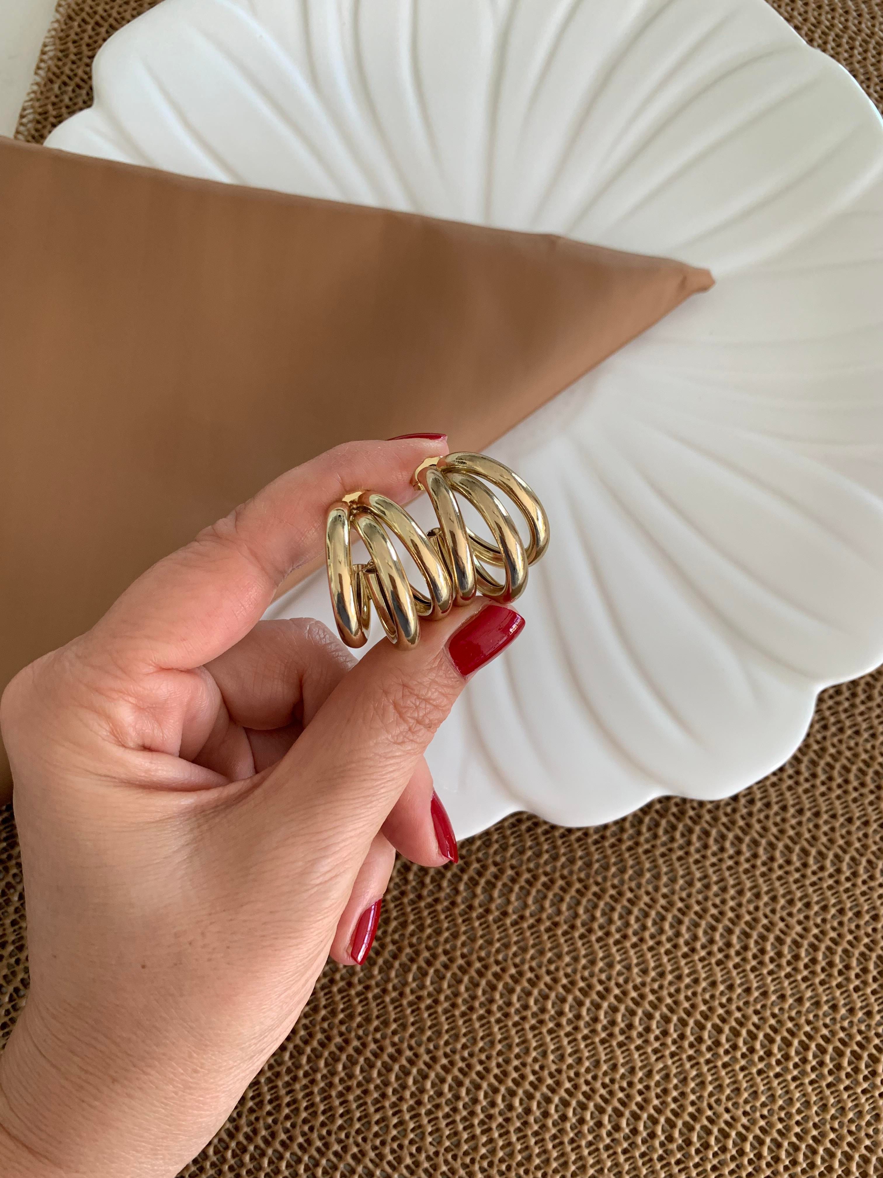 Vip Gold Üç Sıra Kalın Bombeli Boru Ay Halka Küpe