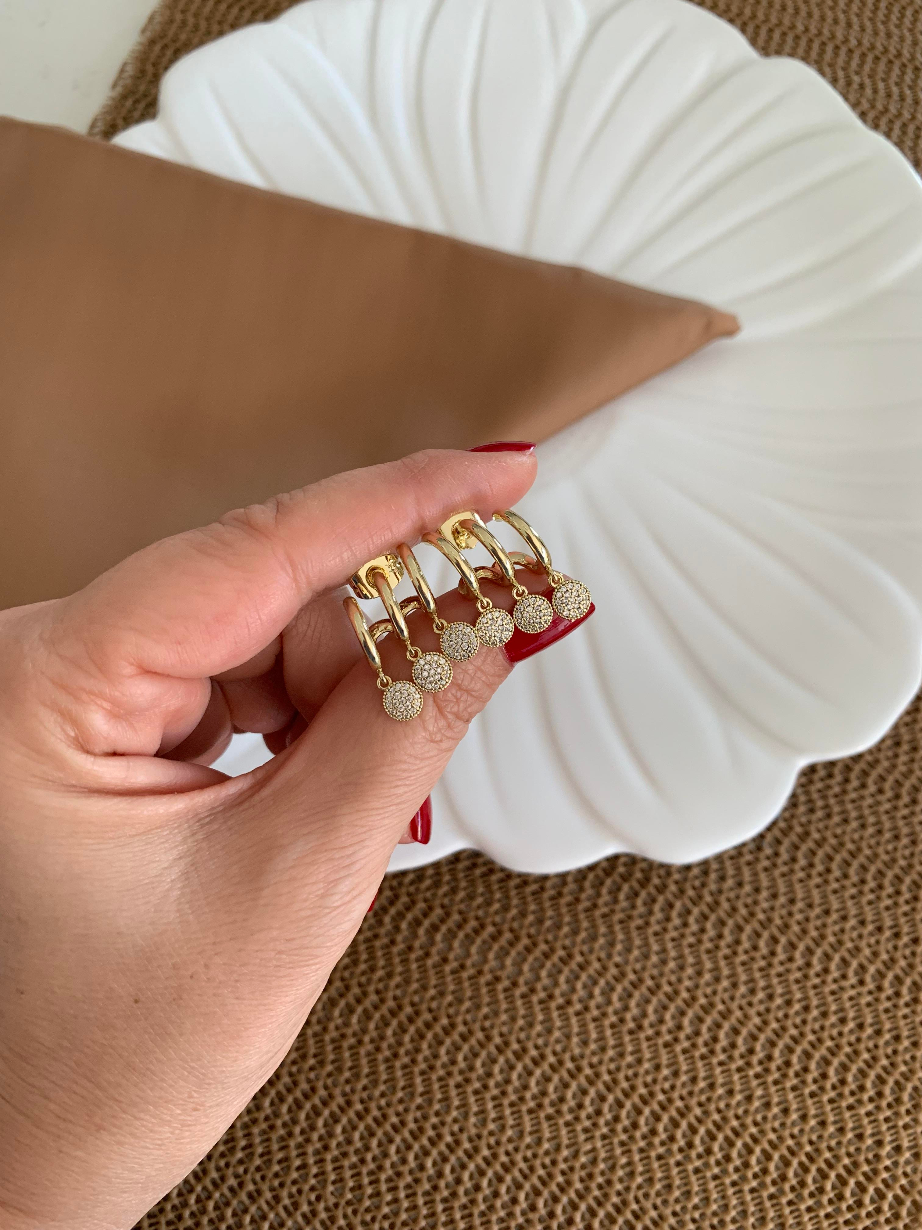 Vip Gold Zirkon Taşlı Daire Sallantılı Tasarım Küpe
