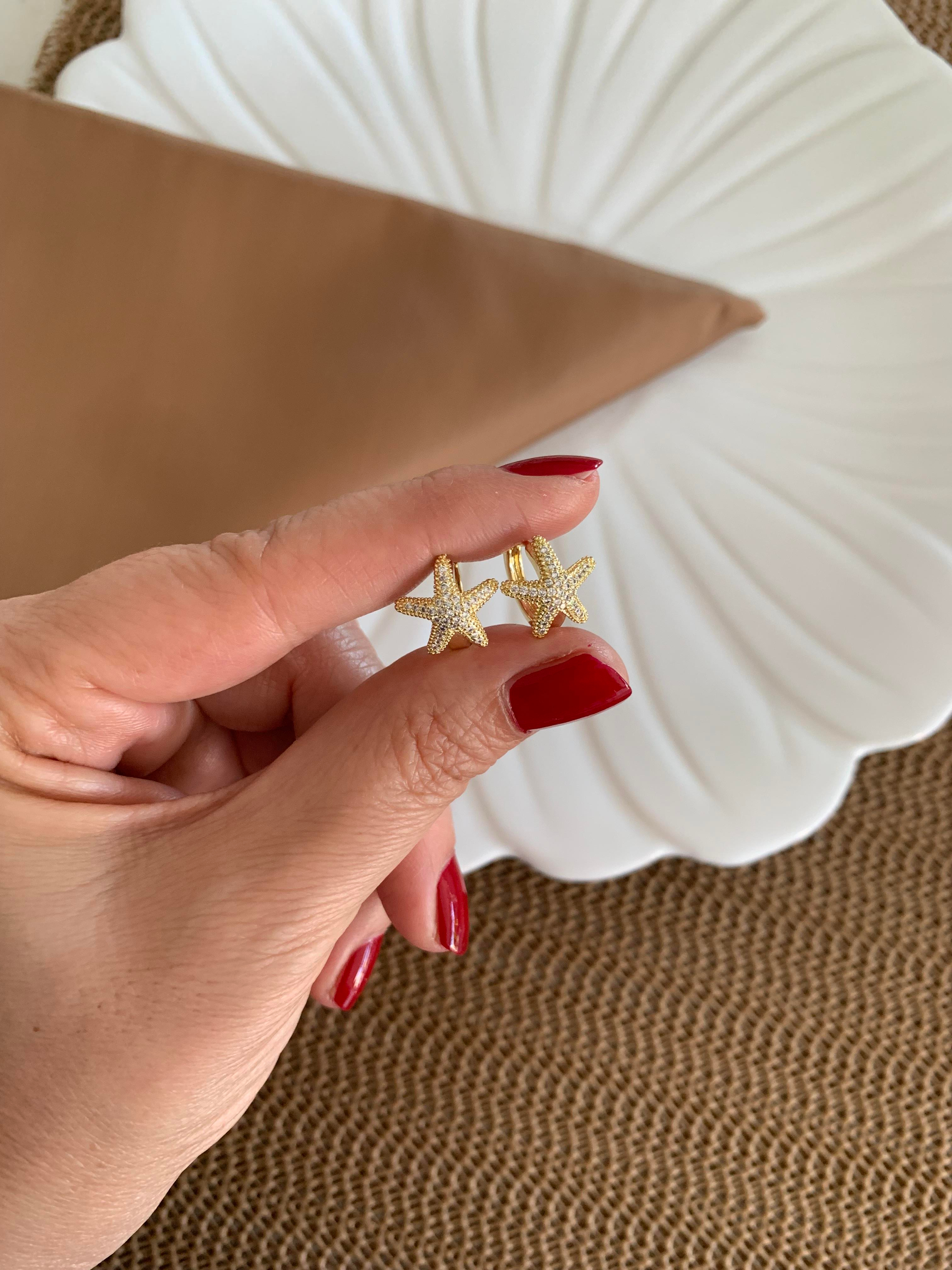 Vip Gold Zirkon Taşlı Deniz Yıldız Mini Halka Küpe