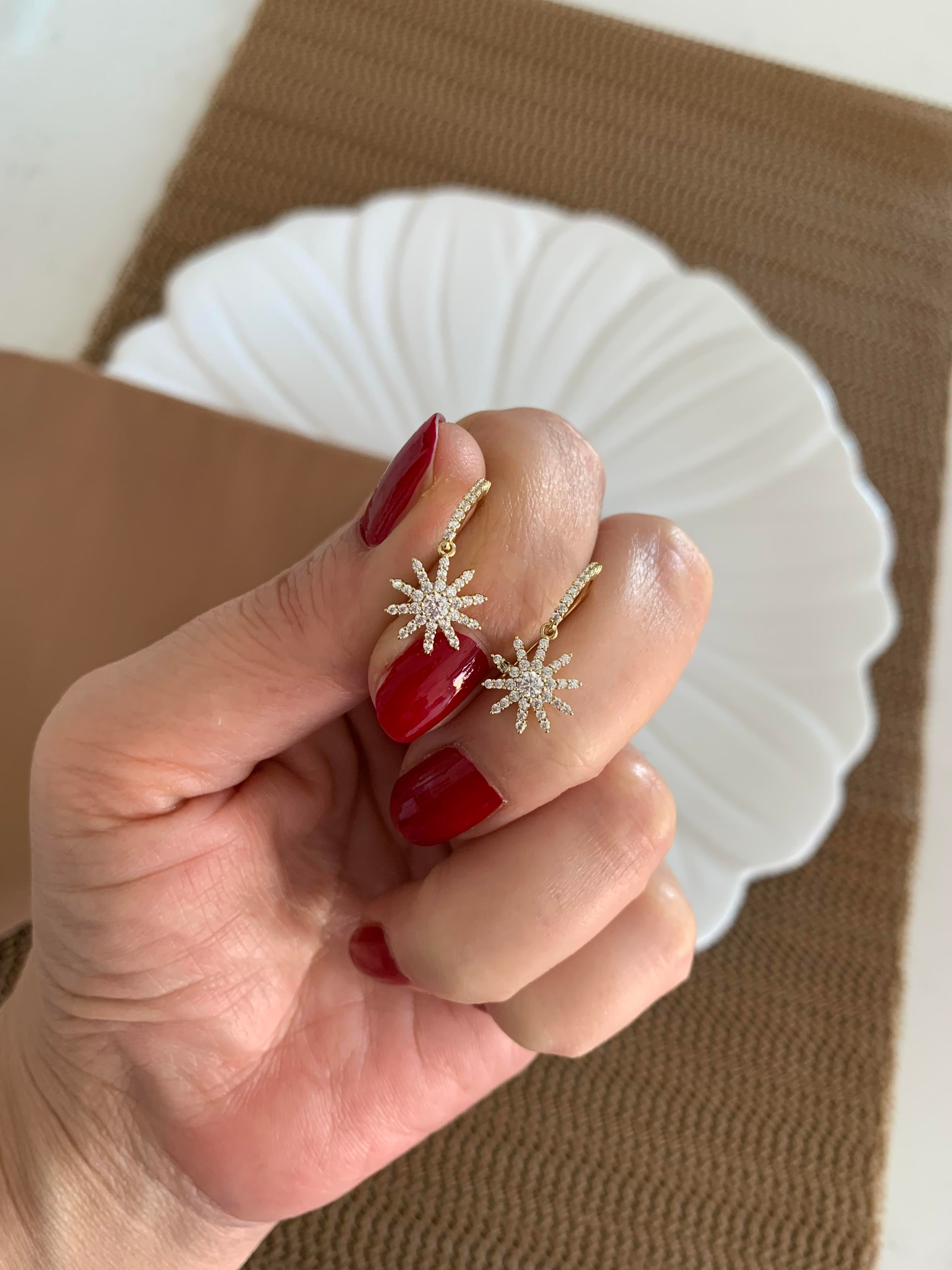 Vip Gold Zirkon Taşlı Mini Güneş Sallantılı Halka Küpe