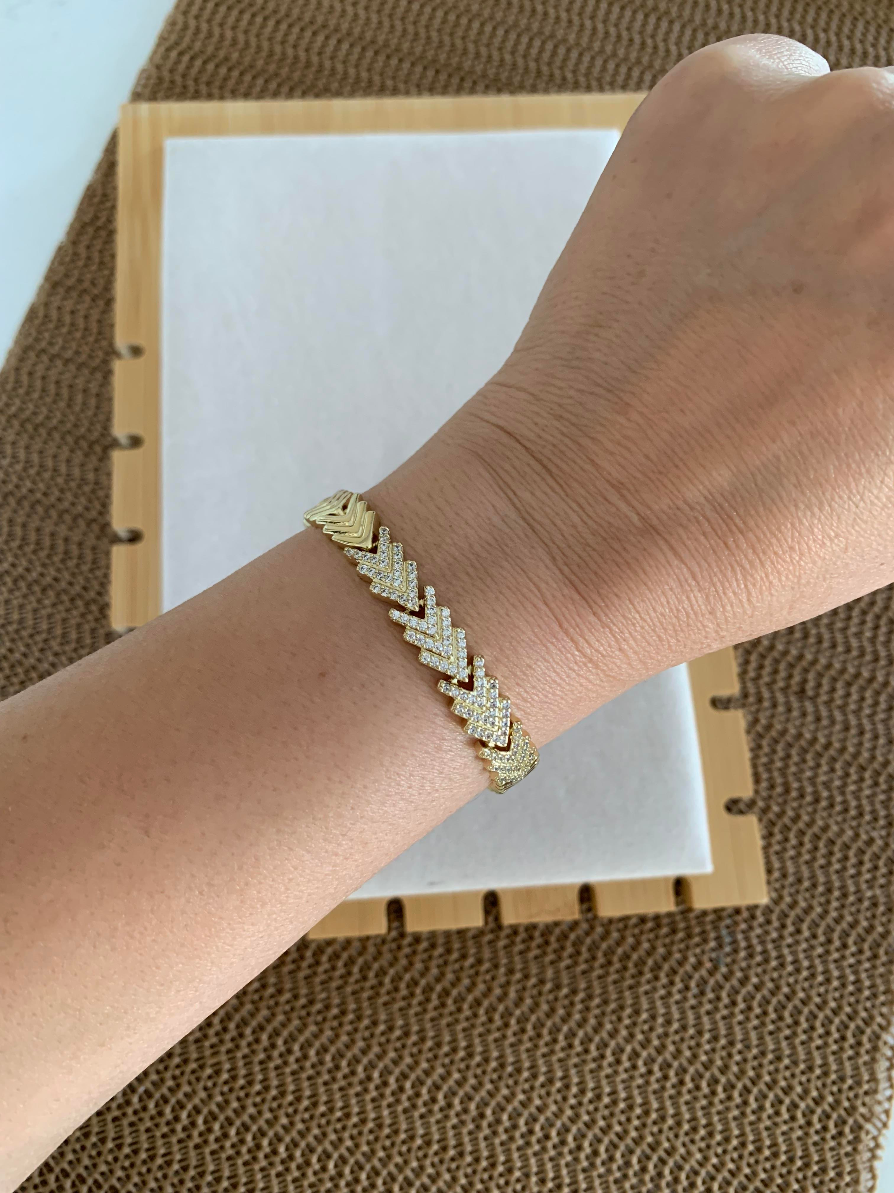 Vip Gold Zirkon Taşlı V Sıralı Zincir Bileklik (1335)