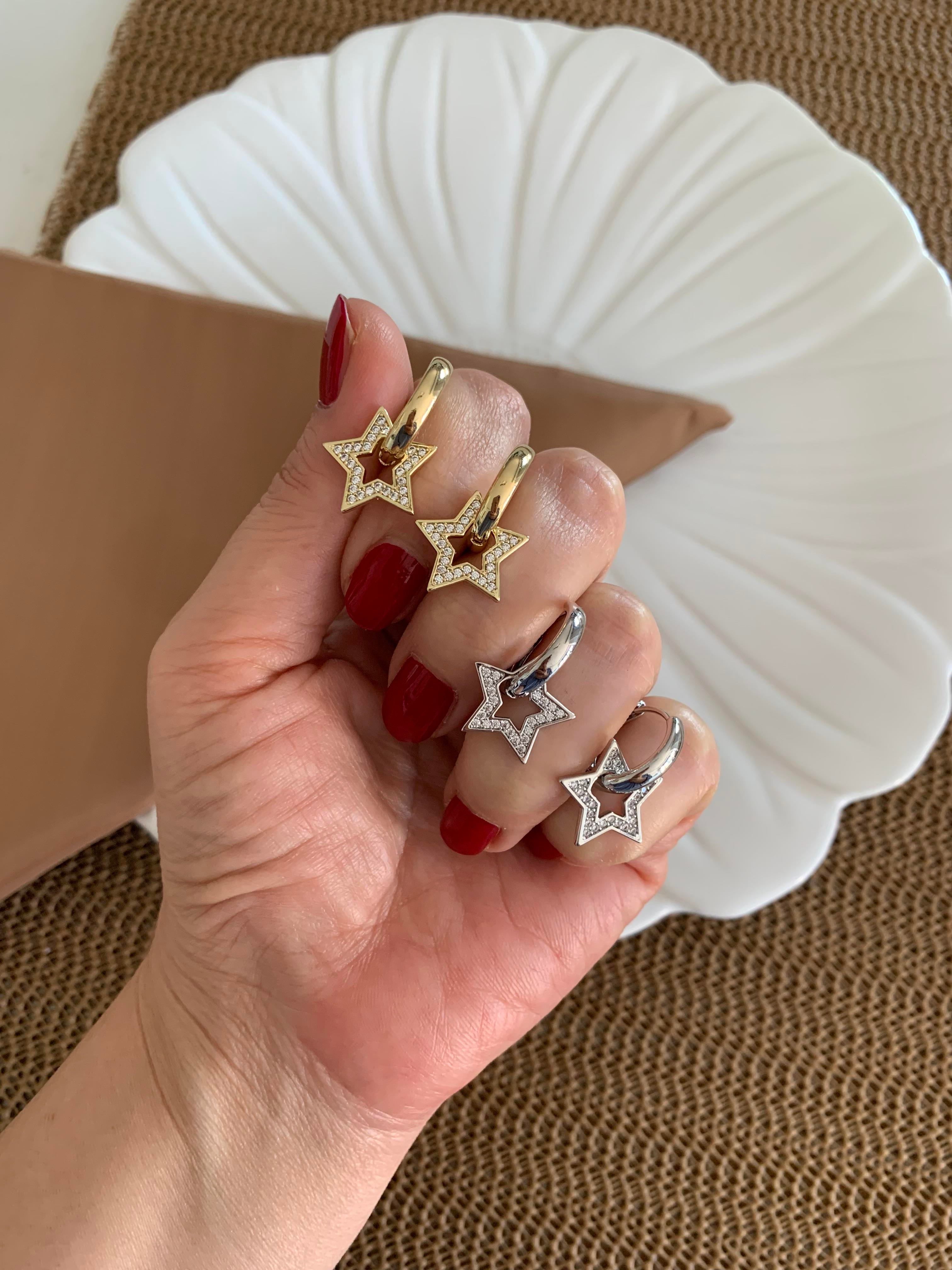 Vip Zirkon Taşlı Yıldız Sallantılı Halka Küpe (1400)